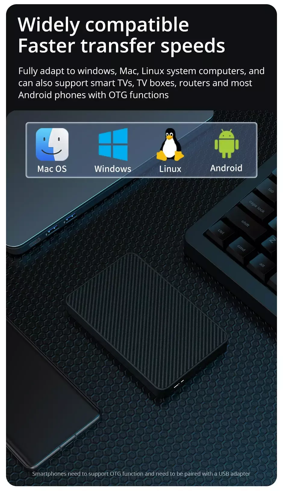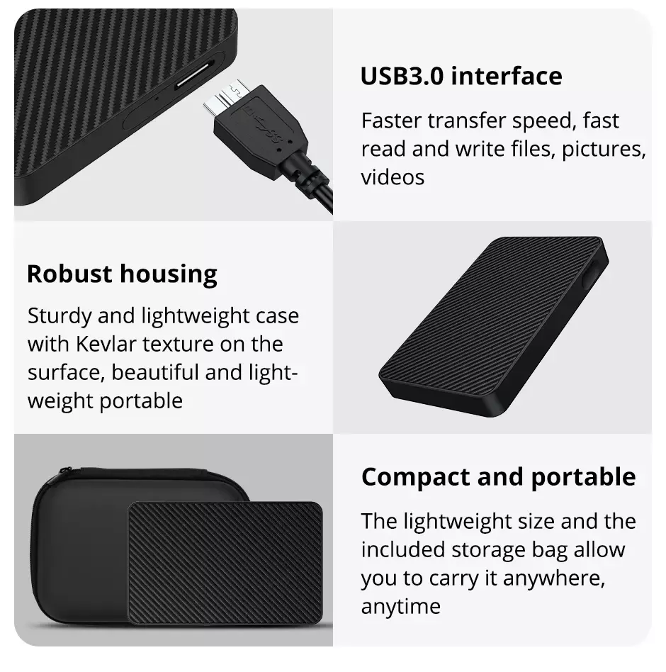 • Design portátil :O tamanho de 2,5 "e o design portátil tornam mais fácil levar esse disco rígido com você em movimento, perfeito para quem precisa acessar seus dados remotamente.