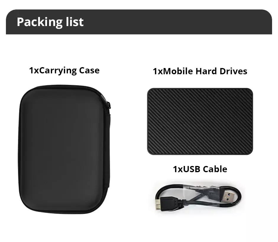 Incluído no Pacote: 1X Disco Rígido Móvel 1X Cabo USB