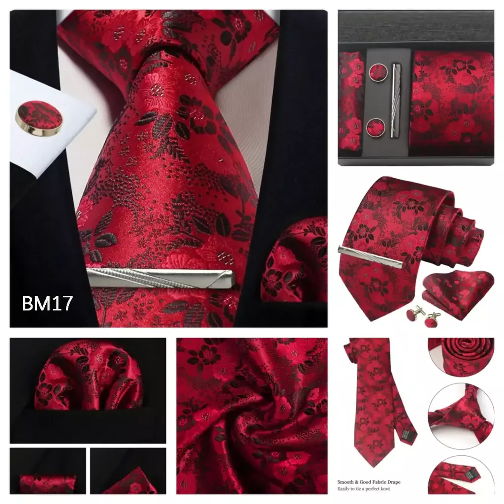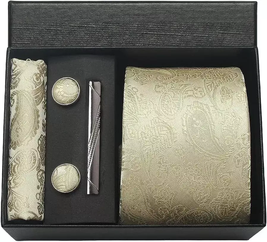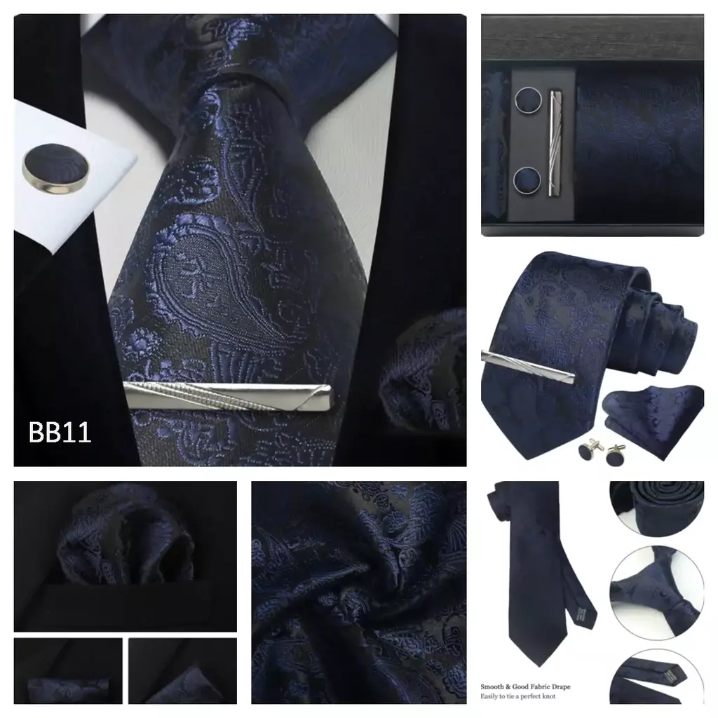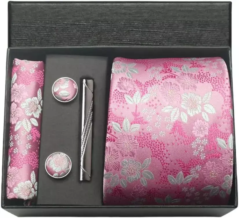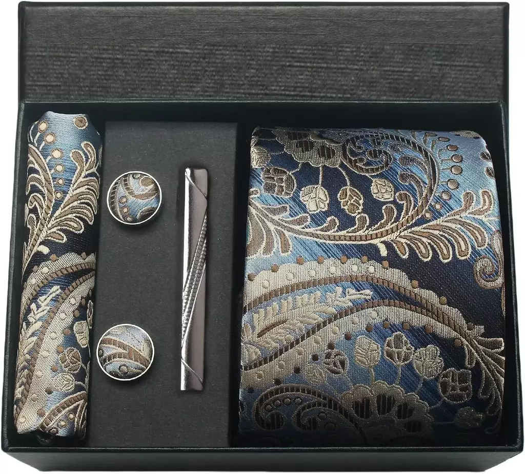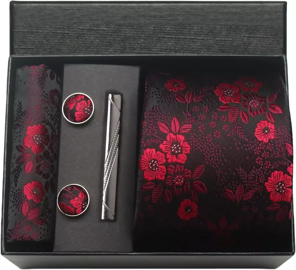 (inclui 1 gravata, 2 abotoaduras, 1 quadrado de bolso e 1 caixa de presente e 1 clipe de gravata)