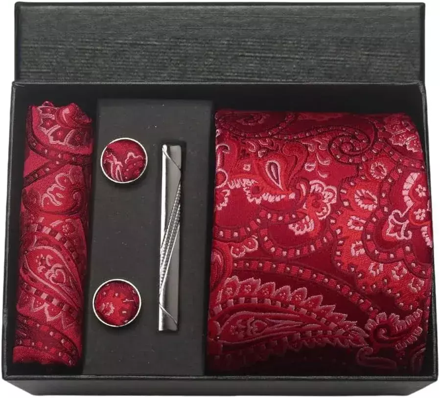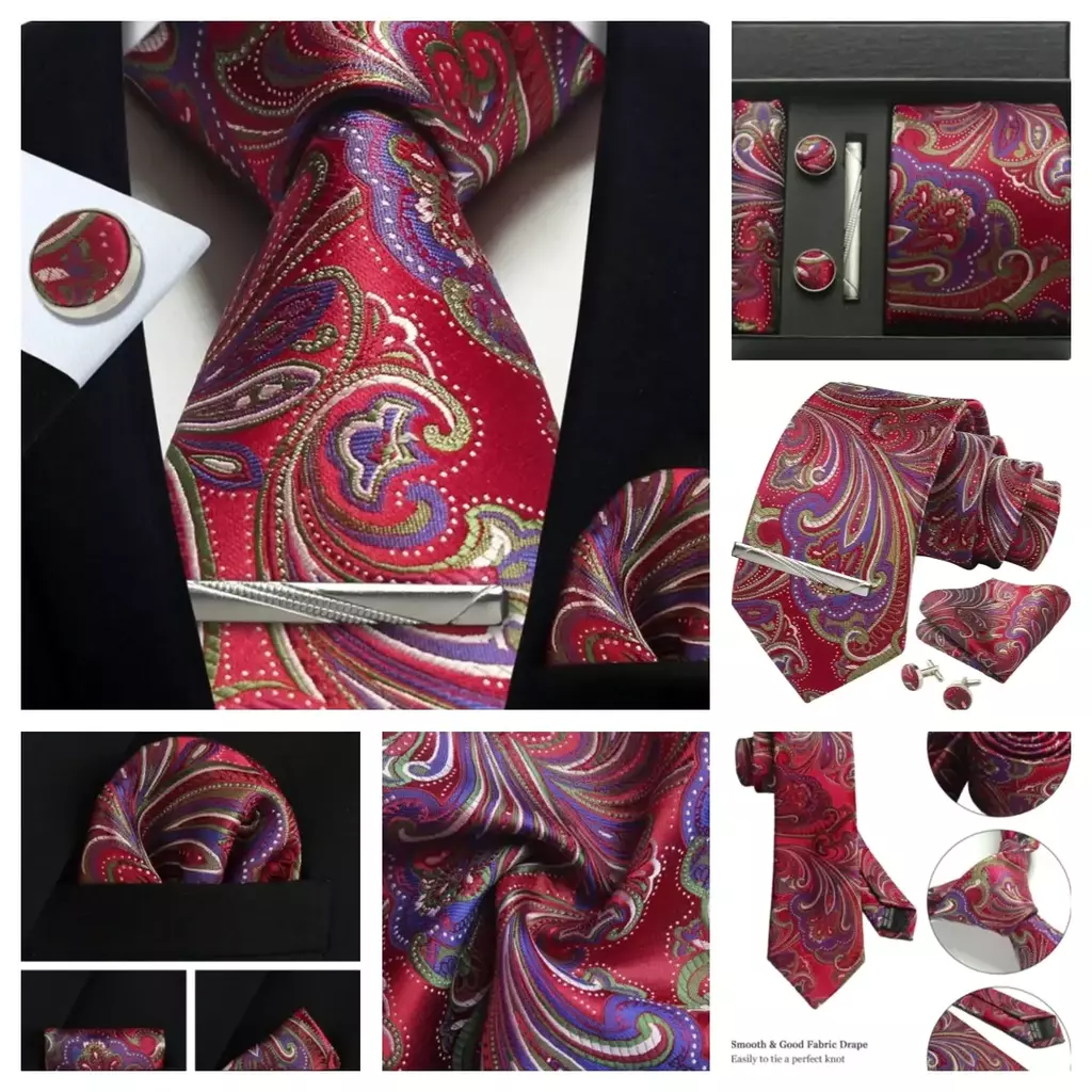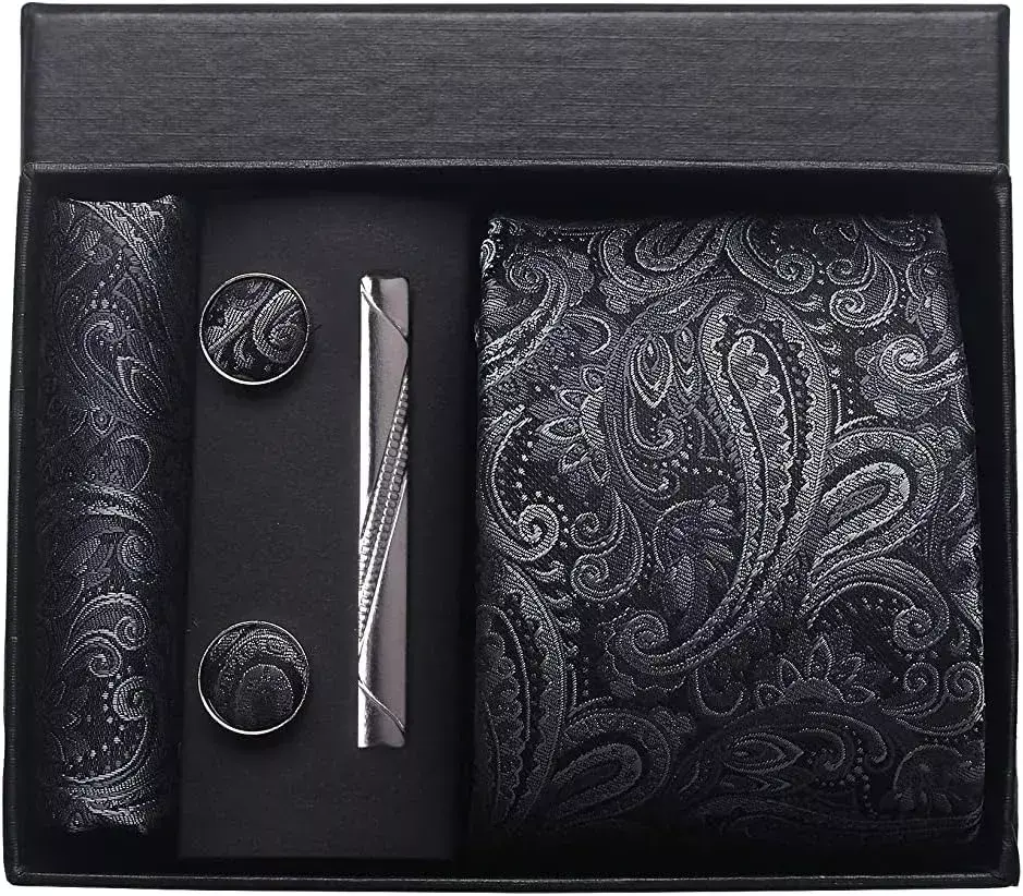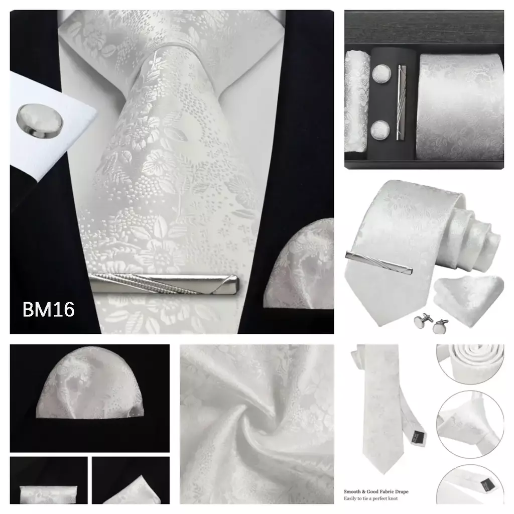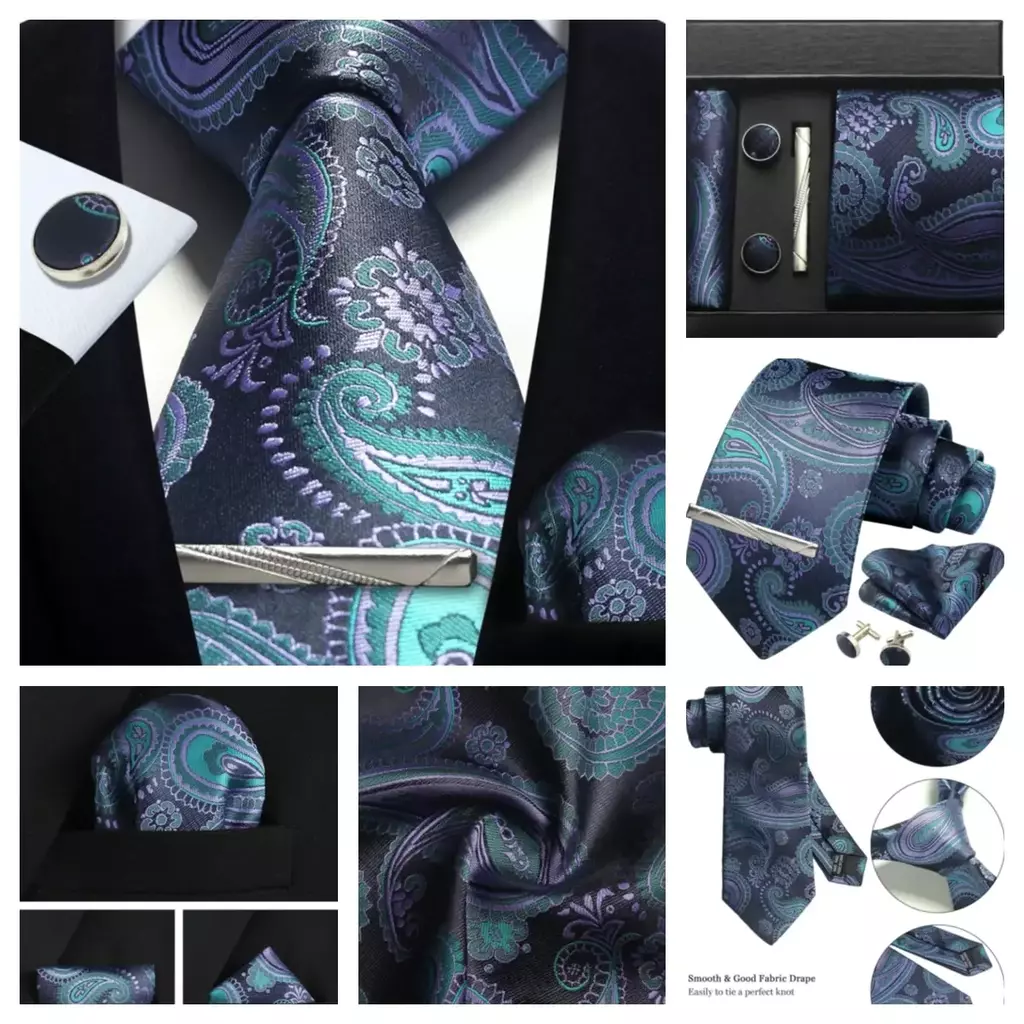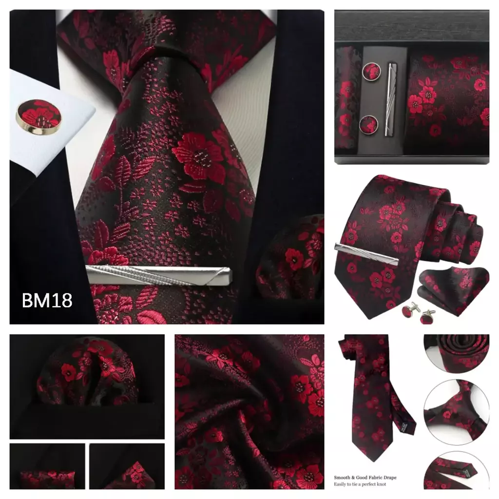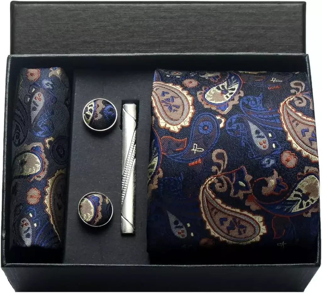 (inclui 1 gravata, 2 abotoaduras, 1 quadrado de bolso e 1 caixa de presente e 1 clipe de gravata)