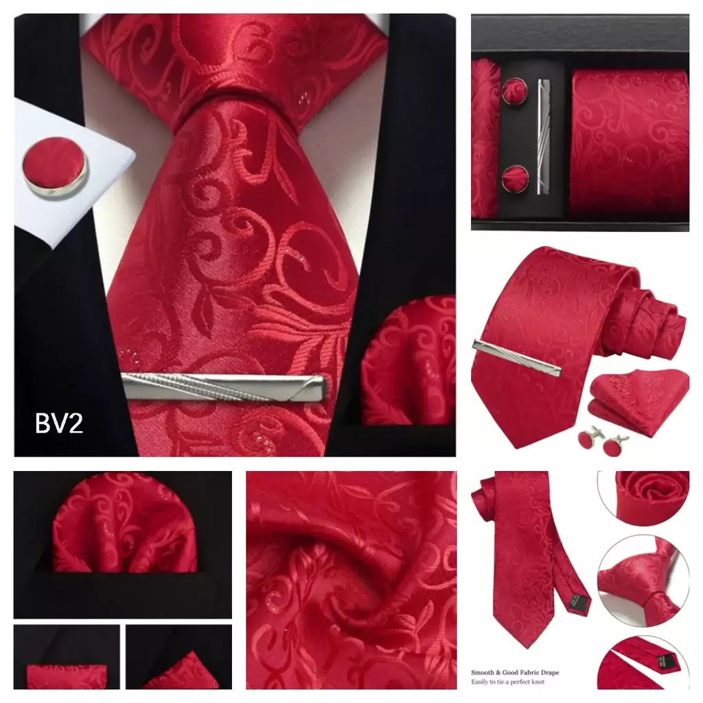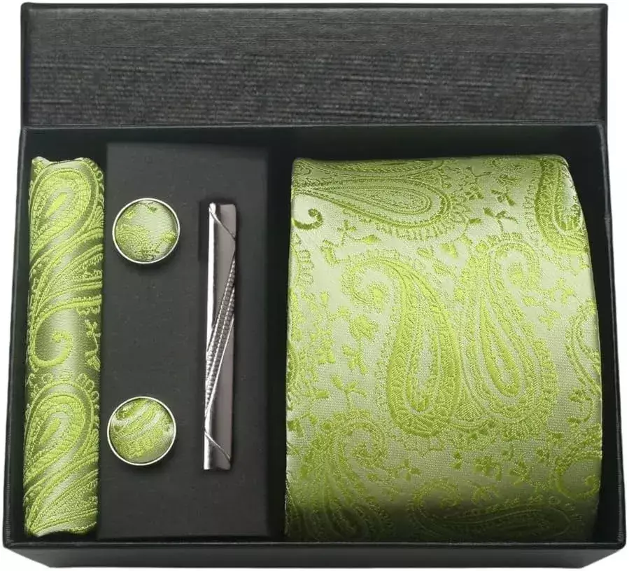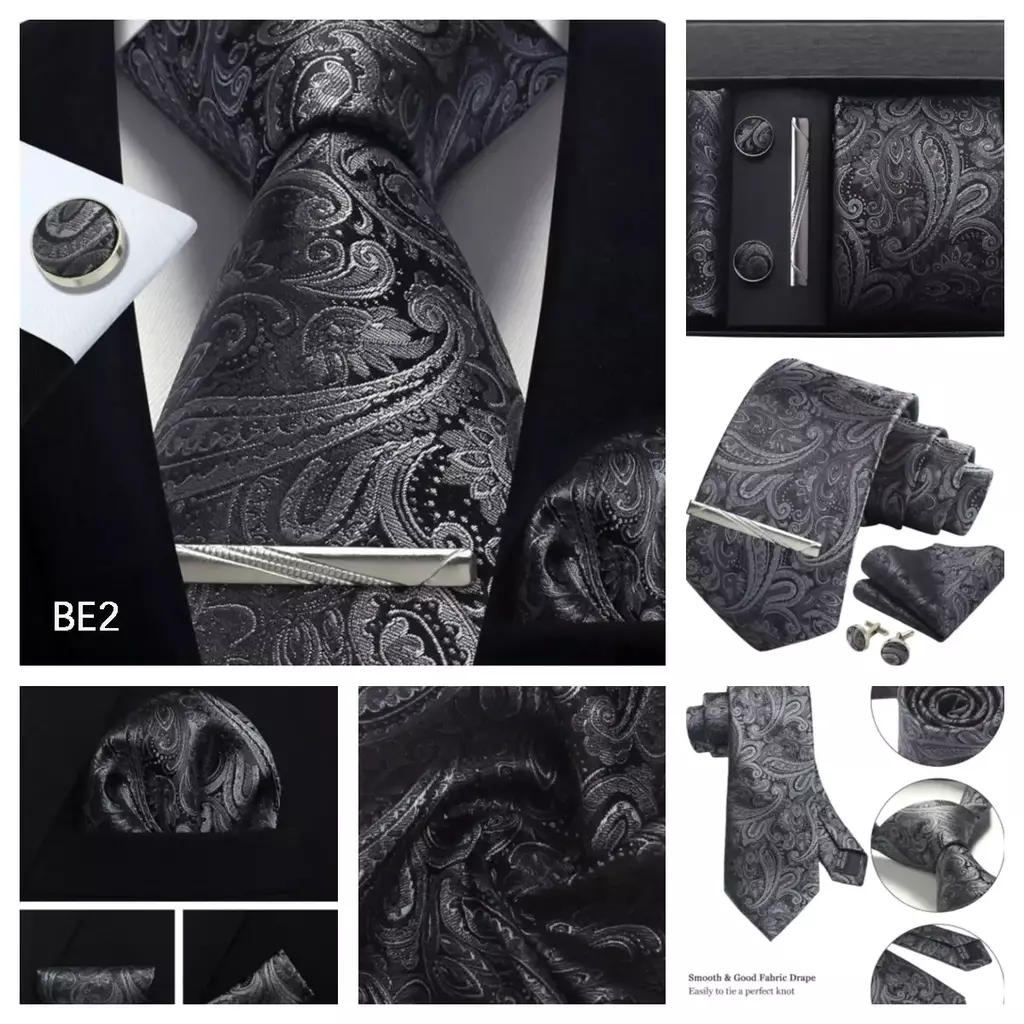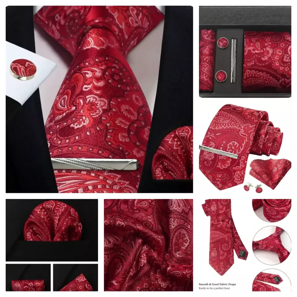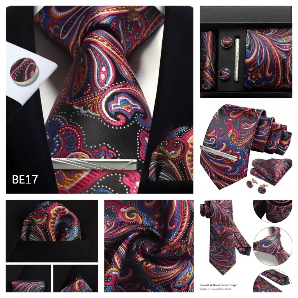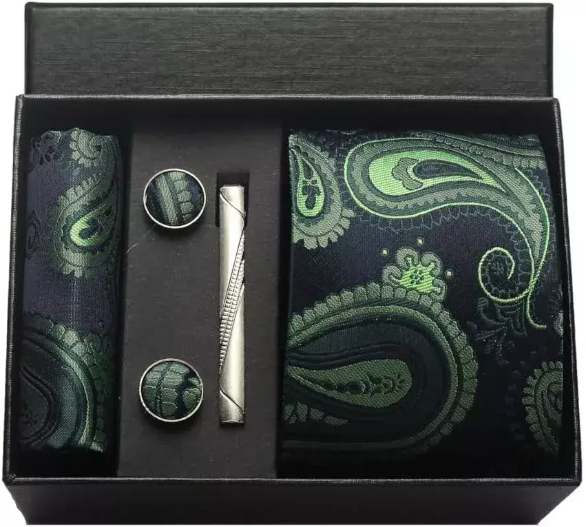 (inclui 1 gravata, 2 abotoaduras, 1 quadrado de bolso e 1 caixa de presente e 1 clipe de gravata)