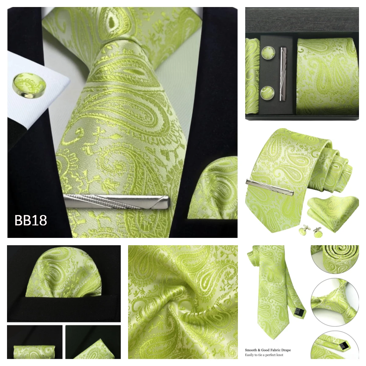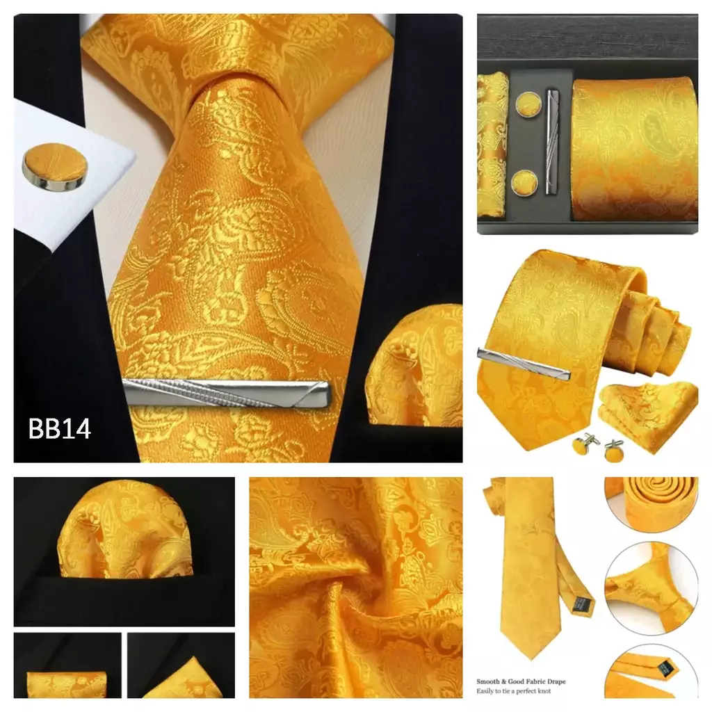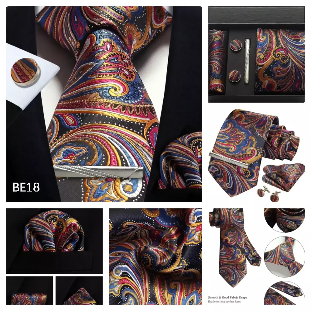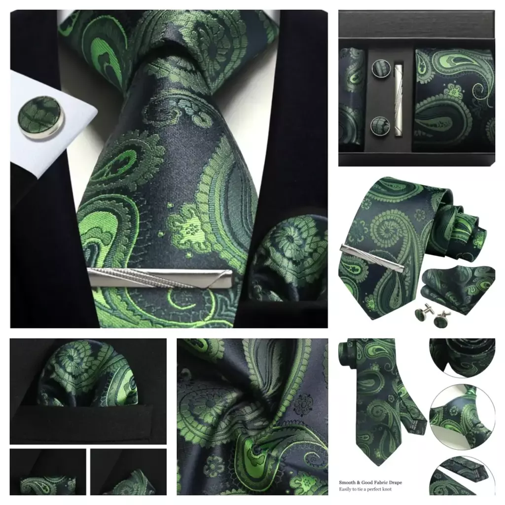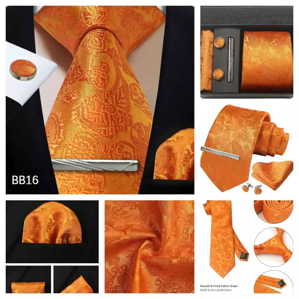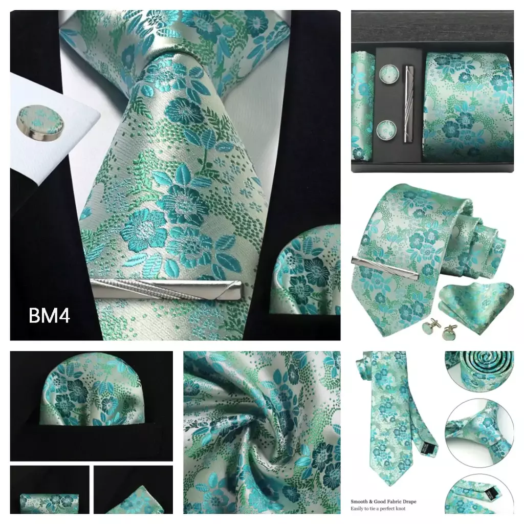 (inclui 1 gravata, 2 abotoaduras, 1 quadrado de bolso e 1 caixa de presente e 1 clipe de gravata)