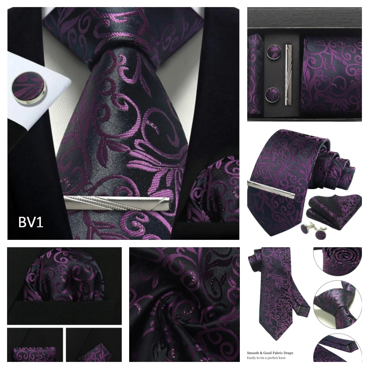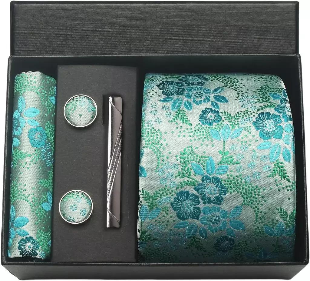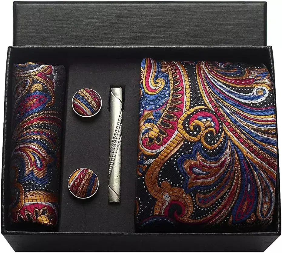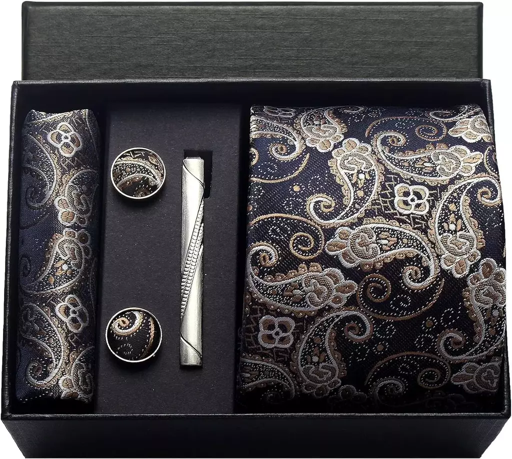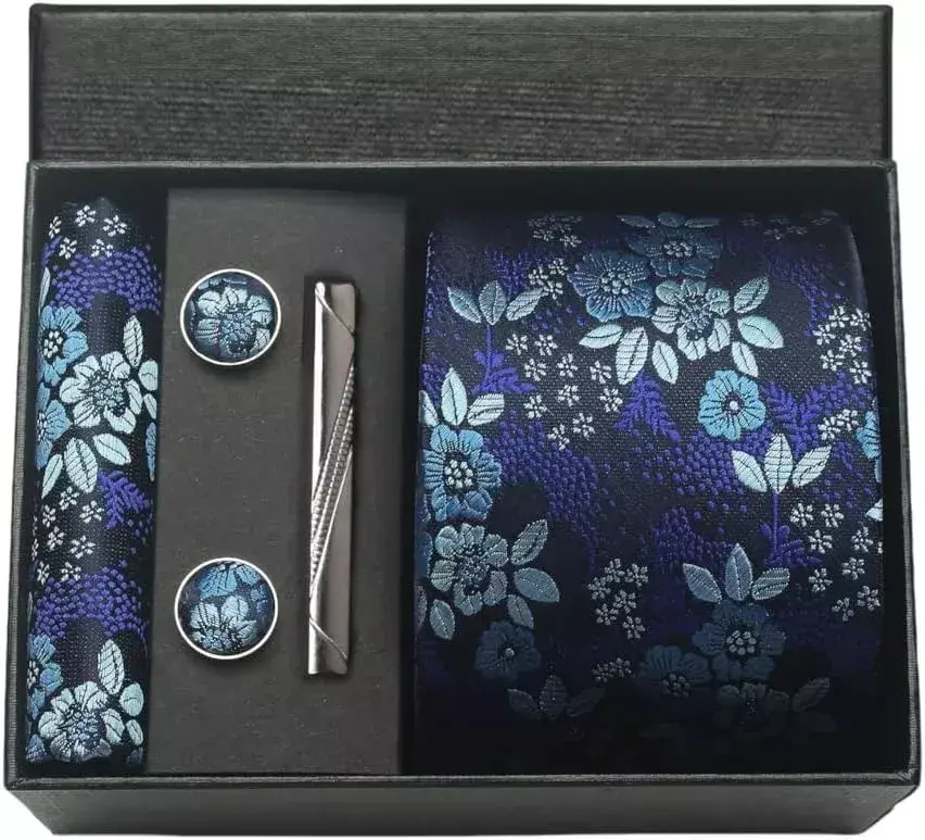 Tie set: Men tie & Pocket square & Cufflinks &Tie Clip & Gift box