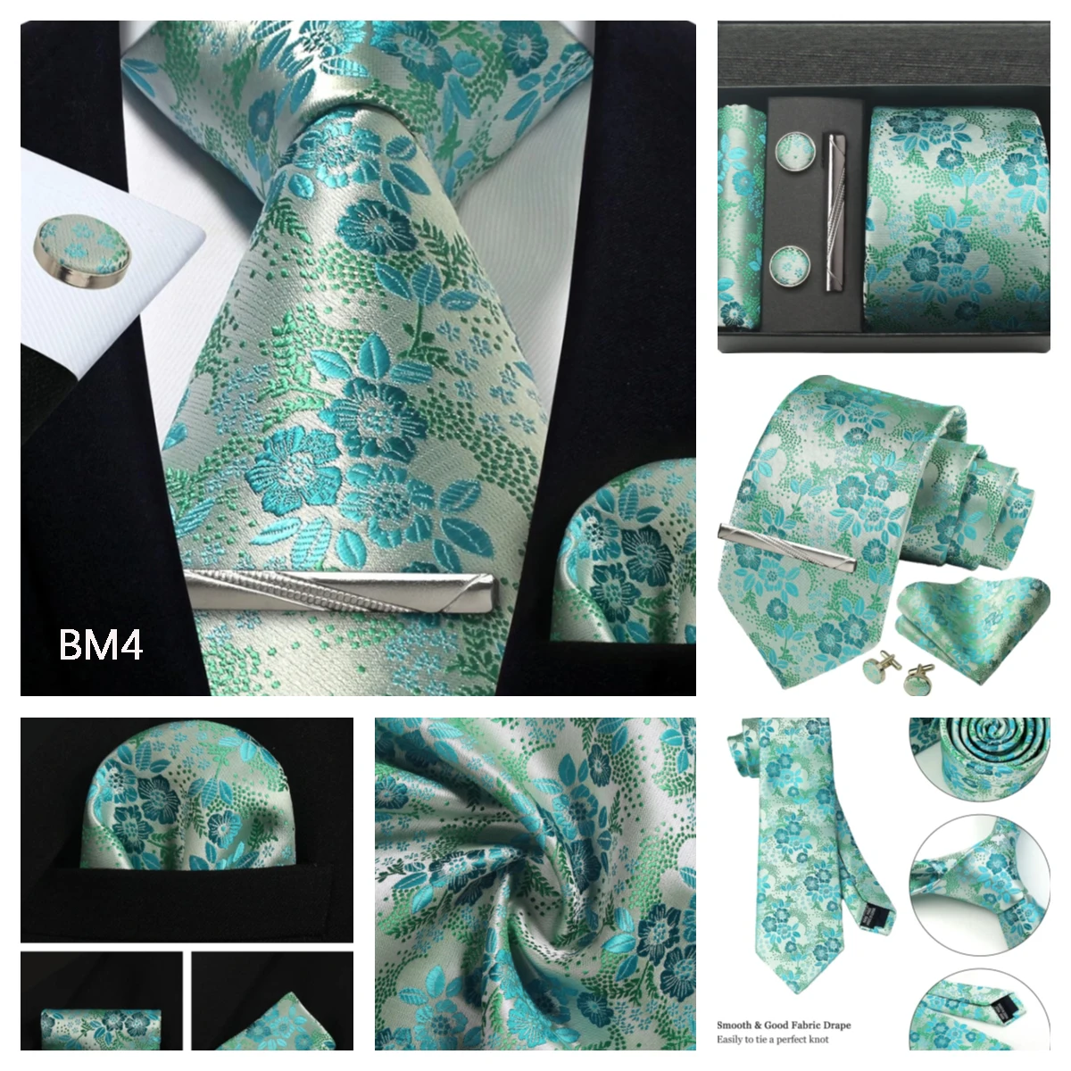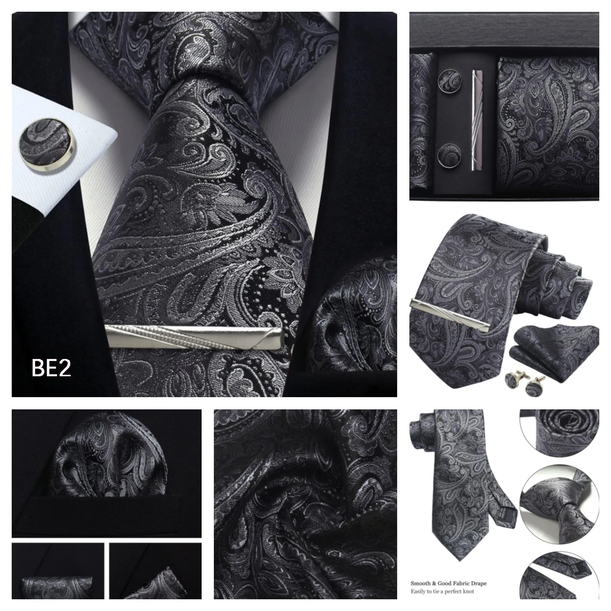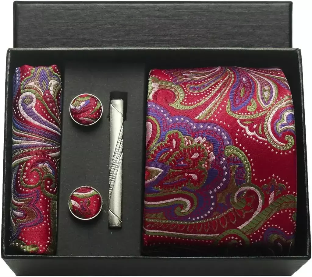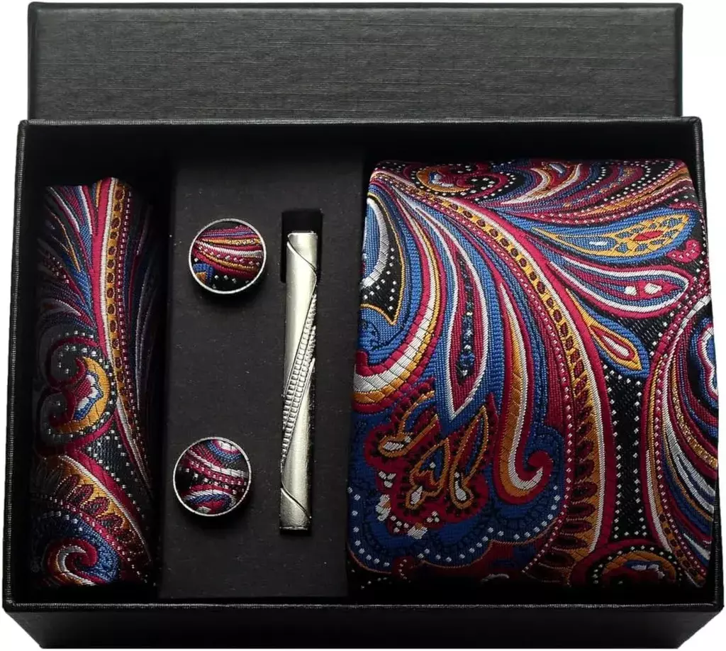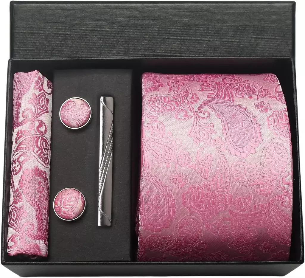 Tie set: Men tie & Pocket square & Cufflinks &Tie Clip & Gift box